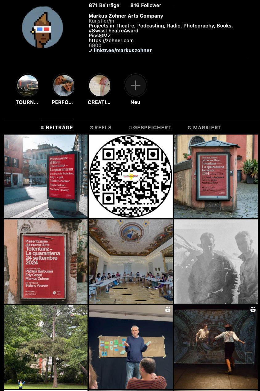 Quattro anni dopo il primo lockdown per la pandemia COVID - 19, la Markus Zohner Arts Company pubblica in forma cartacea il suo progetto di scrittura teatrale, realizzato nella primavera del 2020. È nato un libro di 524 pagine, in edizione limitata. Una testimonianza unica di un periodo straordinario.