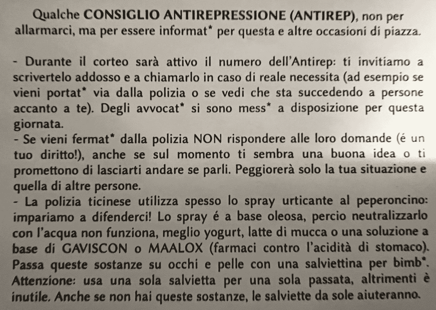 Avremmo forse potuto parlare sull'impiego delle tattiche di repressione impiegate se la Cittá avesse avuto a che fare con un nido di terroristi del cosidetto "Stato Islamico" armati fino ai denti. Ma forse noi lo siamo, ai suoi occhi, onorevole Sindaco: dei terroristi. Perché riconosciamo le facce dietro le maschere. E questa, ai suoi occhi, è la cosa più pericolosa che possa esistere.