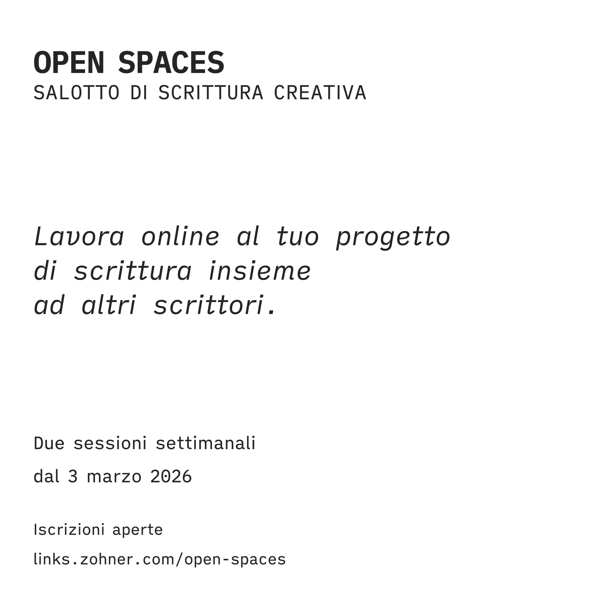 Ti avevo promesso un annuncio. Adesso te lo mando corto, almeno hai le informazioni. Ne parlo con più calma nelle prossime lettere: abbiamo ideato OPEN SPACES, un Salotto di scrittura. È un nuovo formato per la scrittura online, creato per chi desidera dare una regolarità alla propria scrittura.